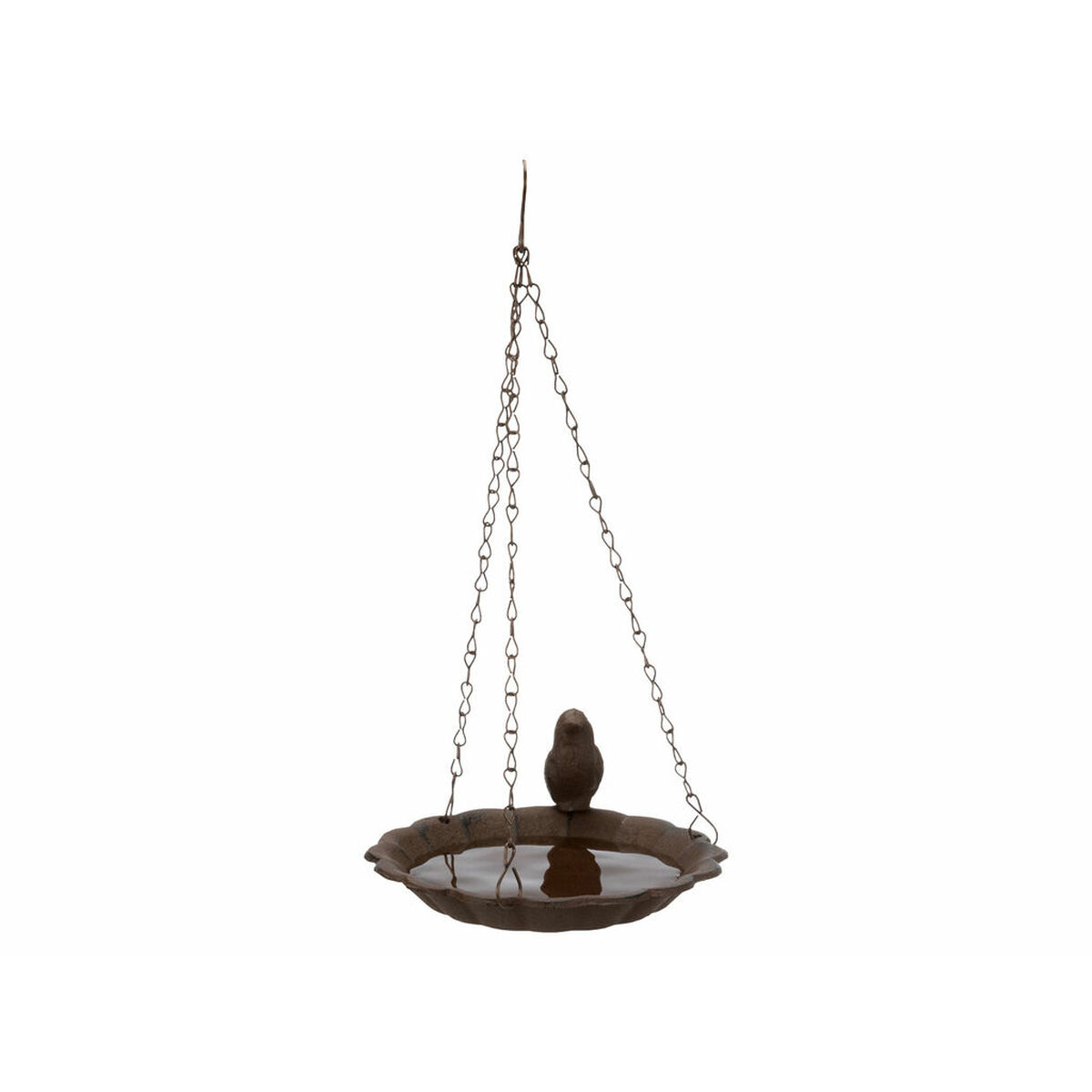 * **Design funzionale ed estetico:** Il colore marrone e il materiale conferiscono un aspetto classico e decorativo che si integra armoniosamente in giardini o balconi. La sua natura di "abbeveratoio sospeso" (confermata dalla ricerca EAN) offre versatilità nel posizionamento e sicurezza per gli uccelli.