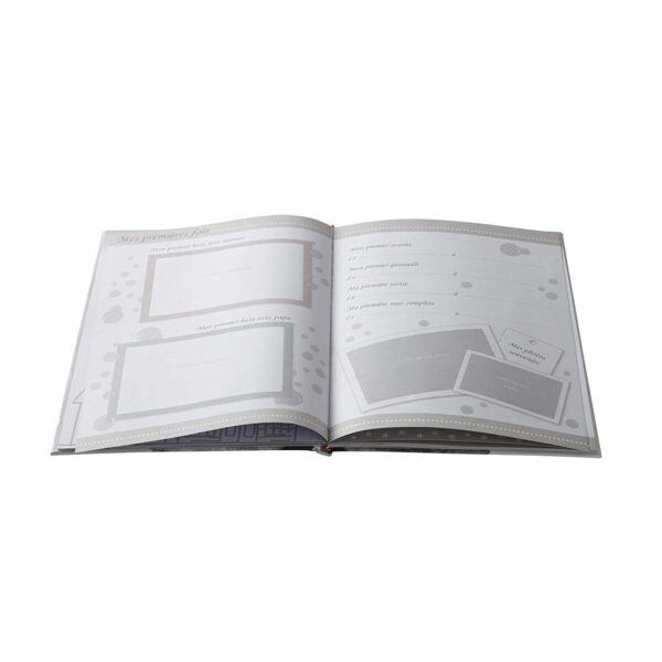 - **Pratico sistema di organizzazione:** La presenza di scatole portaoggetti all'interno dell'album suggerisce un sistema pratico per organizzare piccoli oggetti, disegni, foto o ricordi dei bambini. Questo aspetto è funzionale per la conservazione e l'ordine.