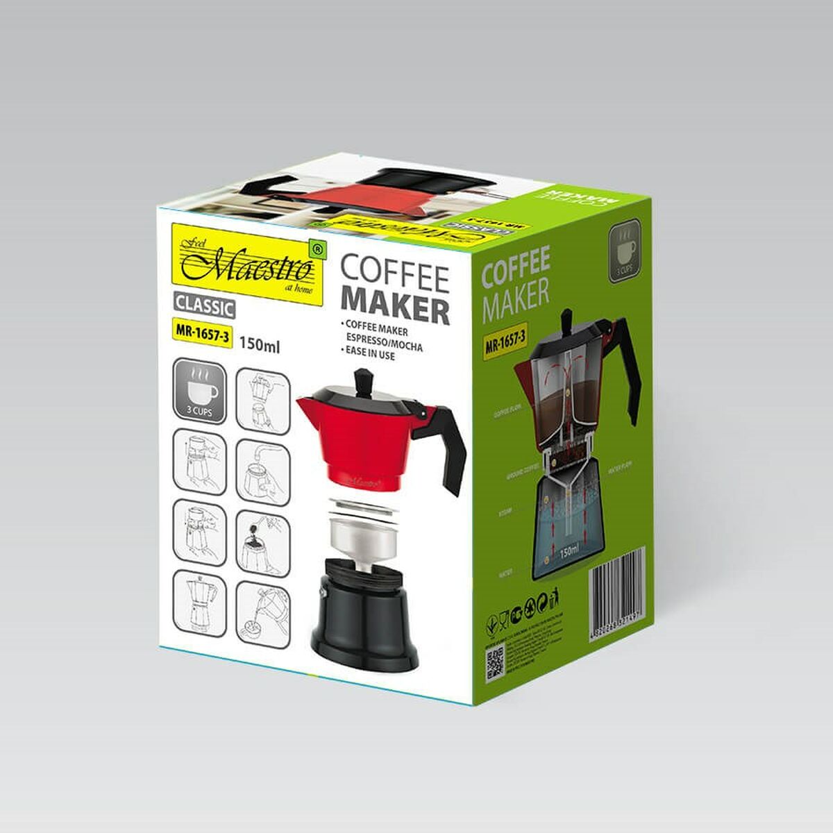 Se ti piace curare ogni singolo dettaglio della casa ed essere sempre alla moda in tema di prodotti che ti renderanno la vità più facile, compra Caffettiera Italiana Feel Maestro MR-1657-3 Nero Rosso Alluminio 150 ml 3 Tazze al miglior prezzo.