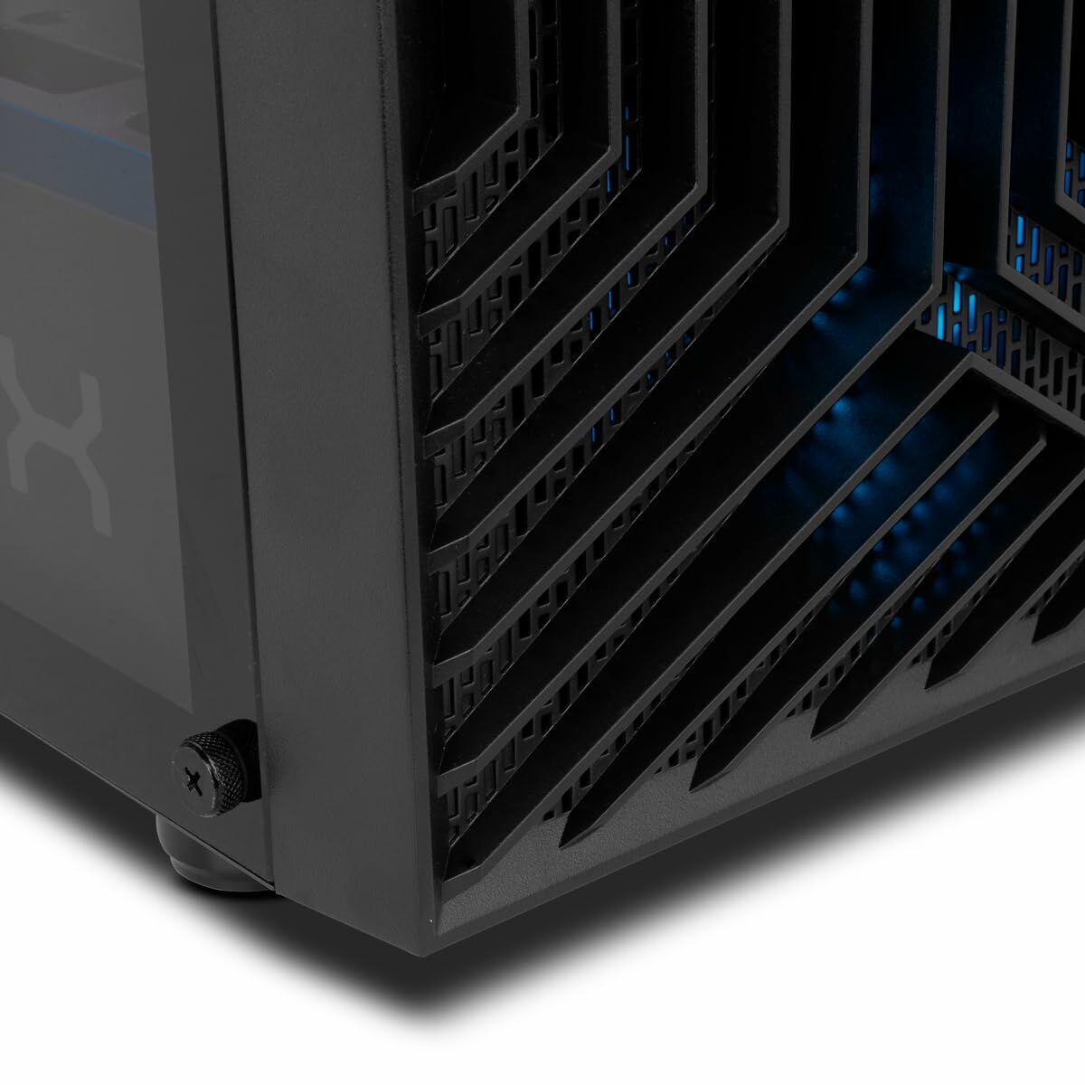 - **Potenziale limitazione del flusso d'aria:** Il pannello frontale solido, sebbene esteticamente gradevole, presenta prese d'aria laterali che potrebbero non garantire un flusso d'aria ottimale per i componenti più esigenti, specialmente in configurazioni ad alto calore.