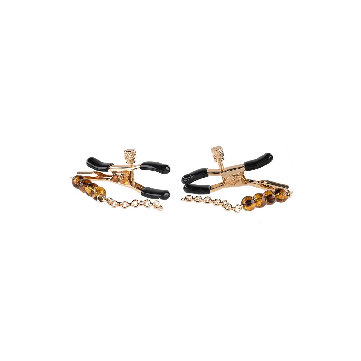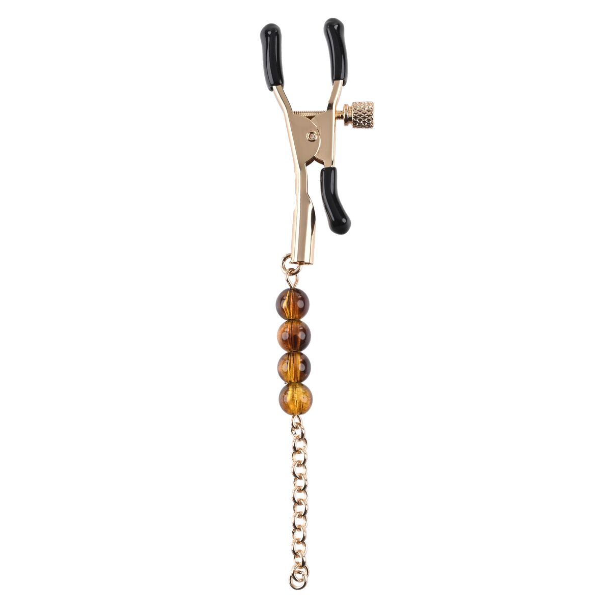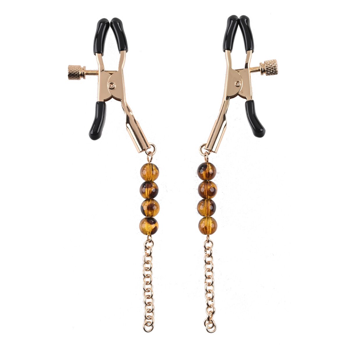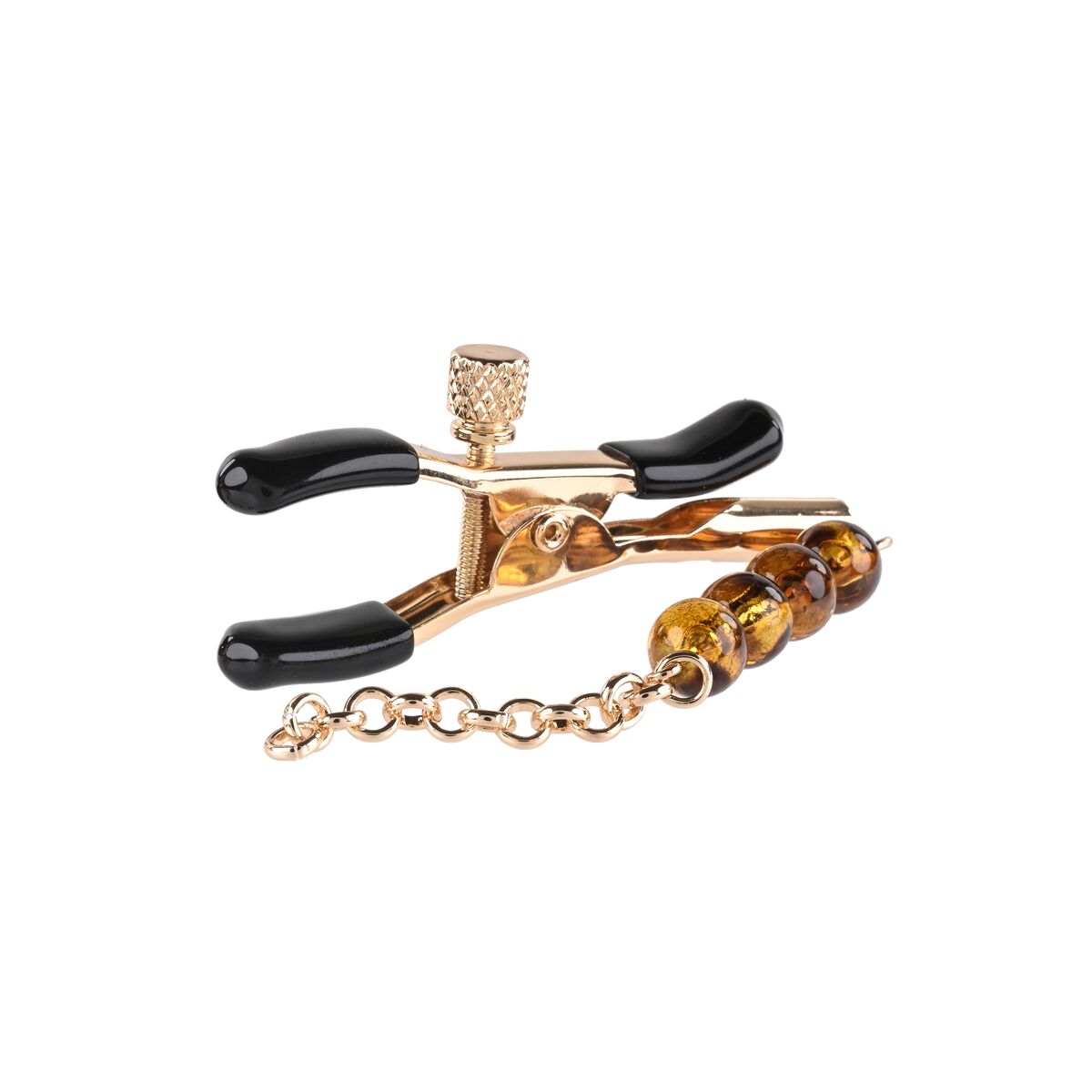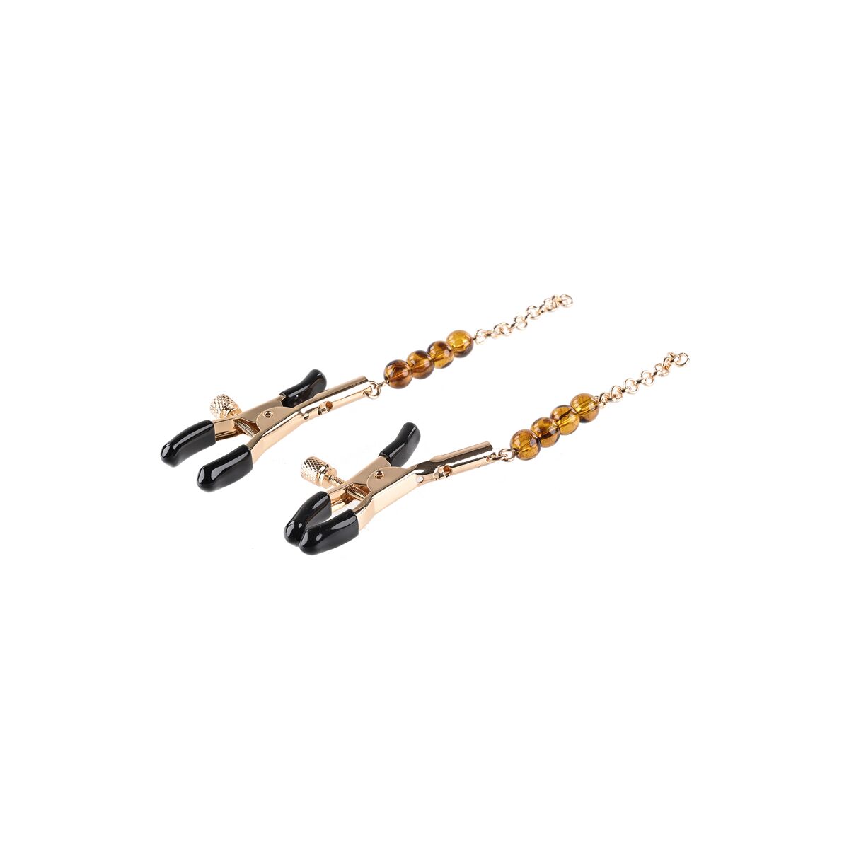- **Design elegante:** La presenza della catenella con perline color ambra (Amber Beaded) conferisce al prodotto un valore estetico superiore rispetto a semplici morsetti funzionali. Questo lo rende non solo uno strumento di piacere ma anche un accessorio visivamente accattivante, ideale per aggiungere un elemento decorativo e sensuale al gioco.