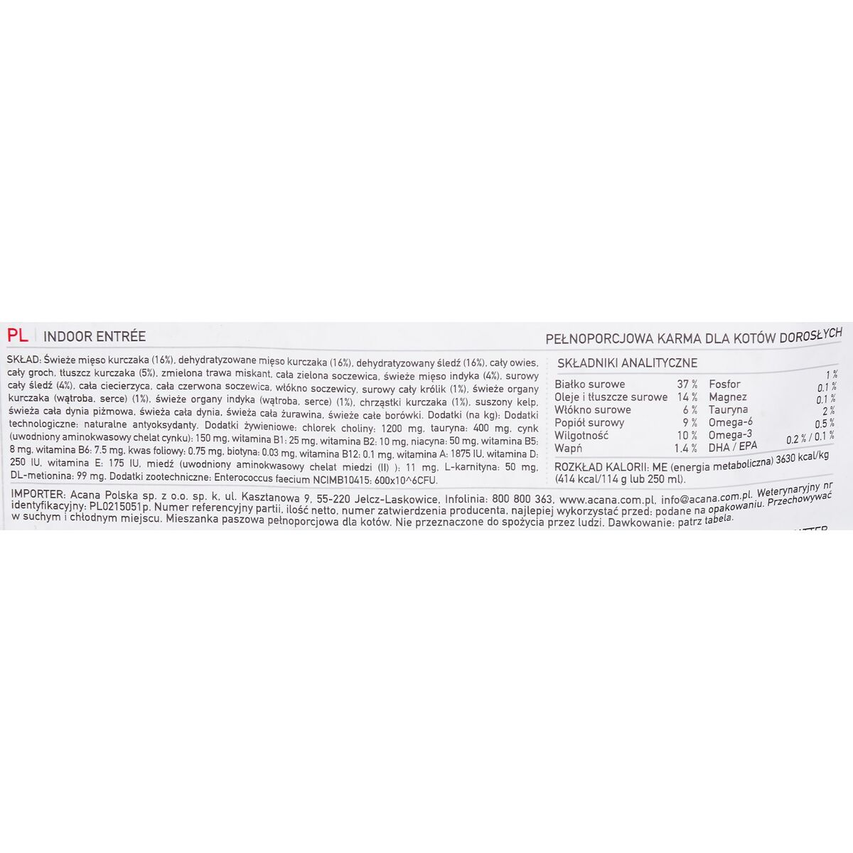 - **Ricca fonte di proteine animali:** L'Acana Indoor Entrée Adult Pollo Tacchino Pesce Coniglio contiene una varietà di proteine animali (pollo, tacchino, pesce, coniglio), elemento fondamentale per una dieta sana e bilanciata per gatti adulti, come confermato da diverse recensioni online che sottolineano la qualità degli ingredienti Acana.