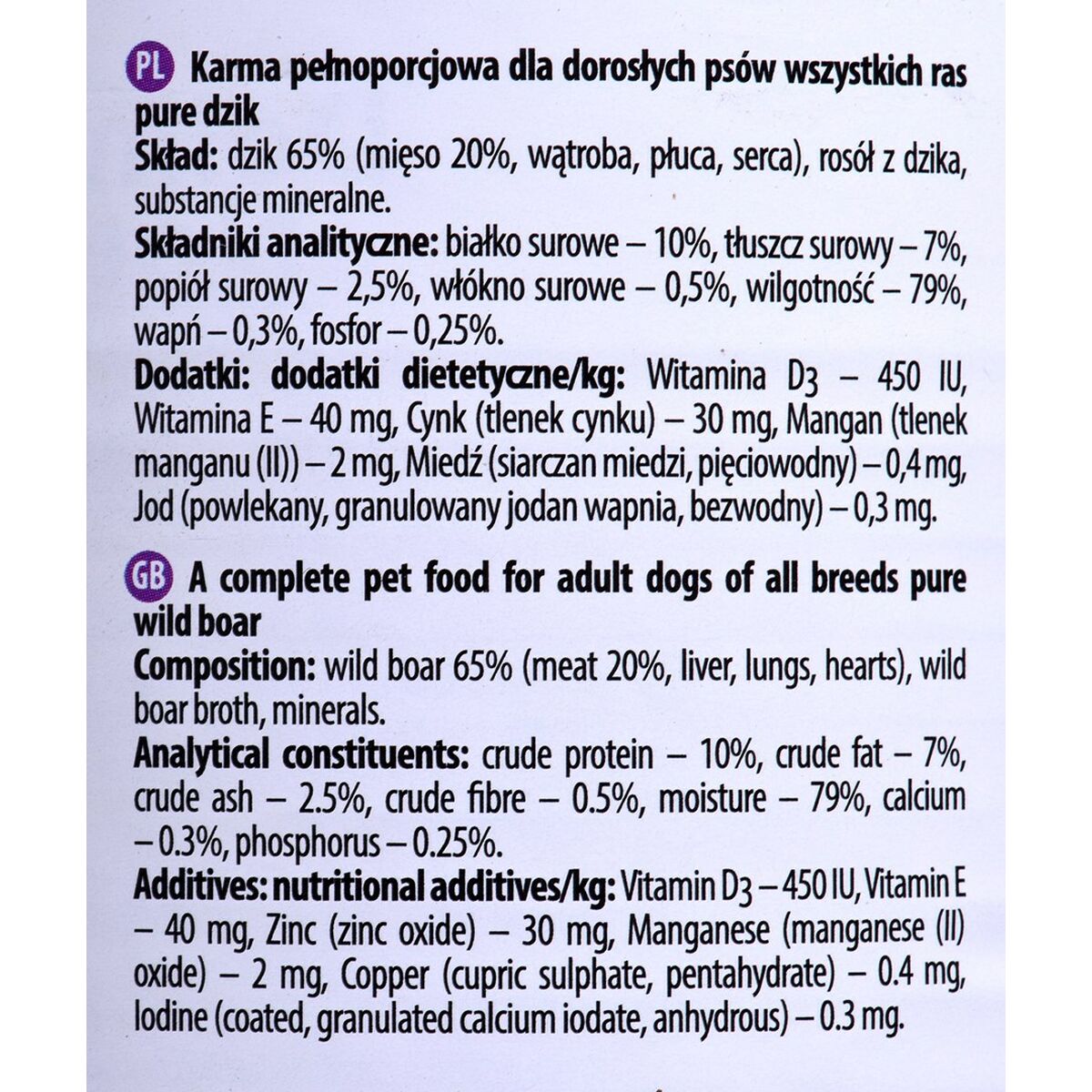 - **Alta percentuale di carne e ingredienti specificati:** La ricerca conferma che la linea Dolina Noteci Premium utilizza un'elevata percentuale di carne e derivati animali (in questo caso, circa il 65% tra cinghiale, manzo e maiale, inclusi organi come fegato e cuori). A differenza di molti prodotti concorrenti, gli ingredienti sono chiaramente elencati e non nascosti dietro diciture generiche, garantendo trasparenza sulla composizione.