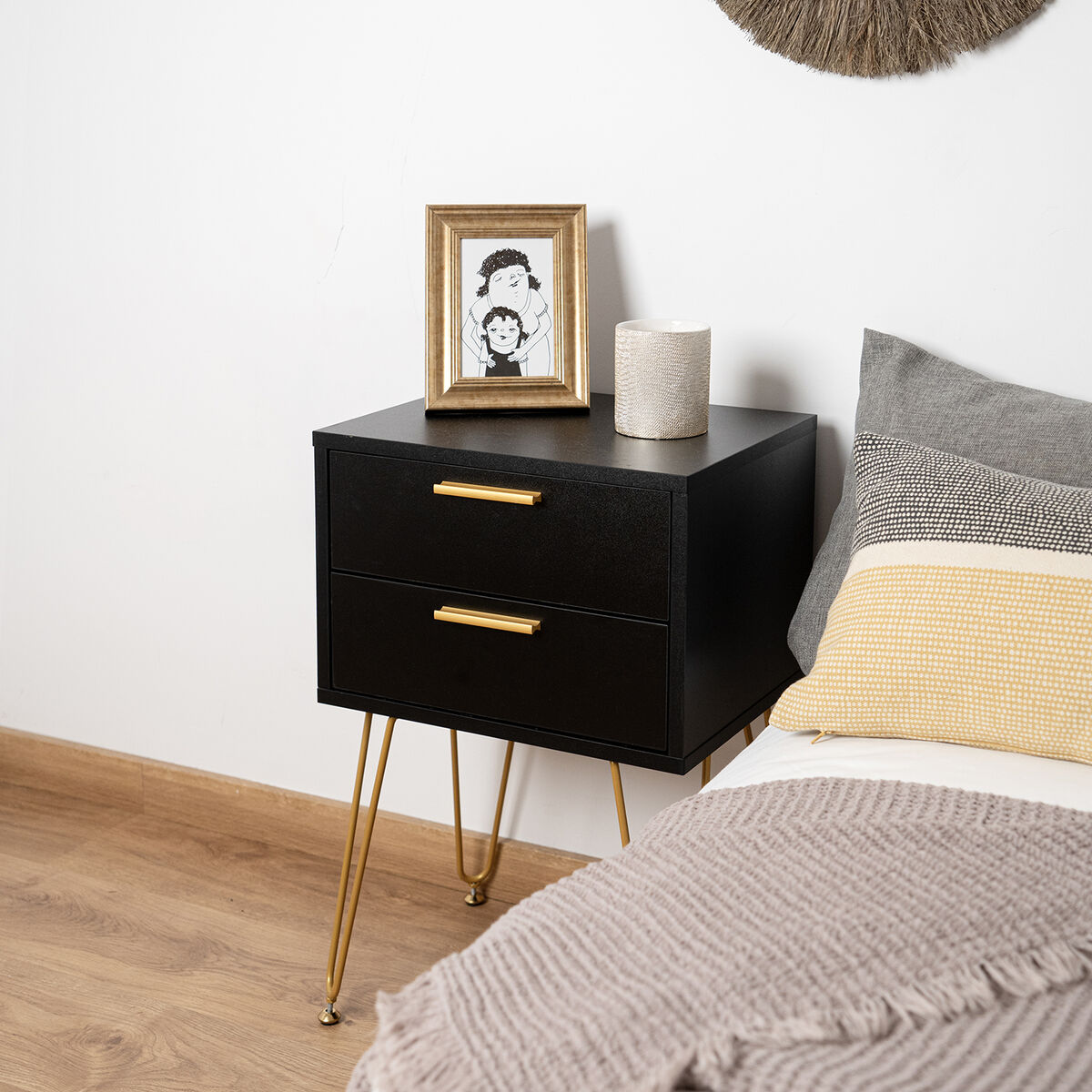 - **Funzionalità di archiviazione:** Dotato di 2 cassetti, offre uno spazio utile e organizzato per riporre oggetti personali accanto al letto, contribuendo a mantenere l'ordine.