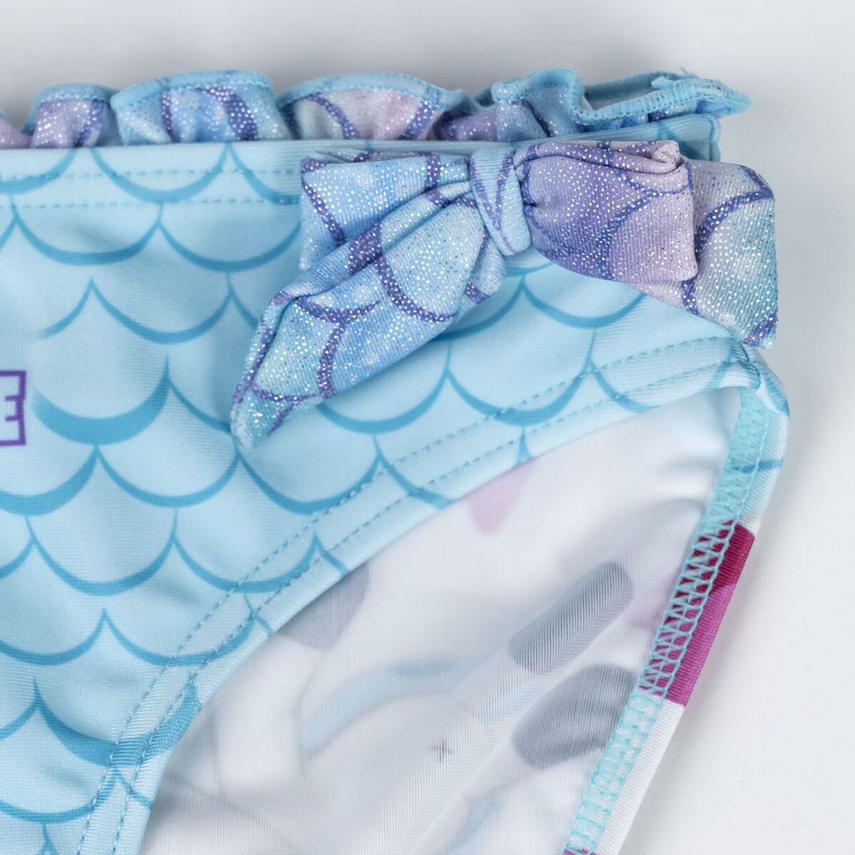 - **Design accattivante:** Il costume da bagno presenta un design ispirato a Gabby's Dollhouse, un cartone animato molto popolare tra le bambine, rendendolo sicuramente attraente per le piccole fan. La presenza del colore azzurro suggerisce un'estetica fresca e estiva.