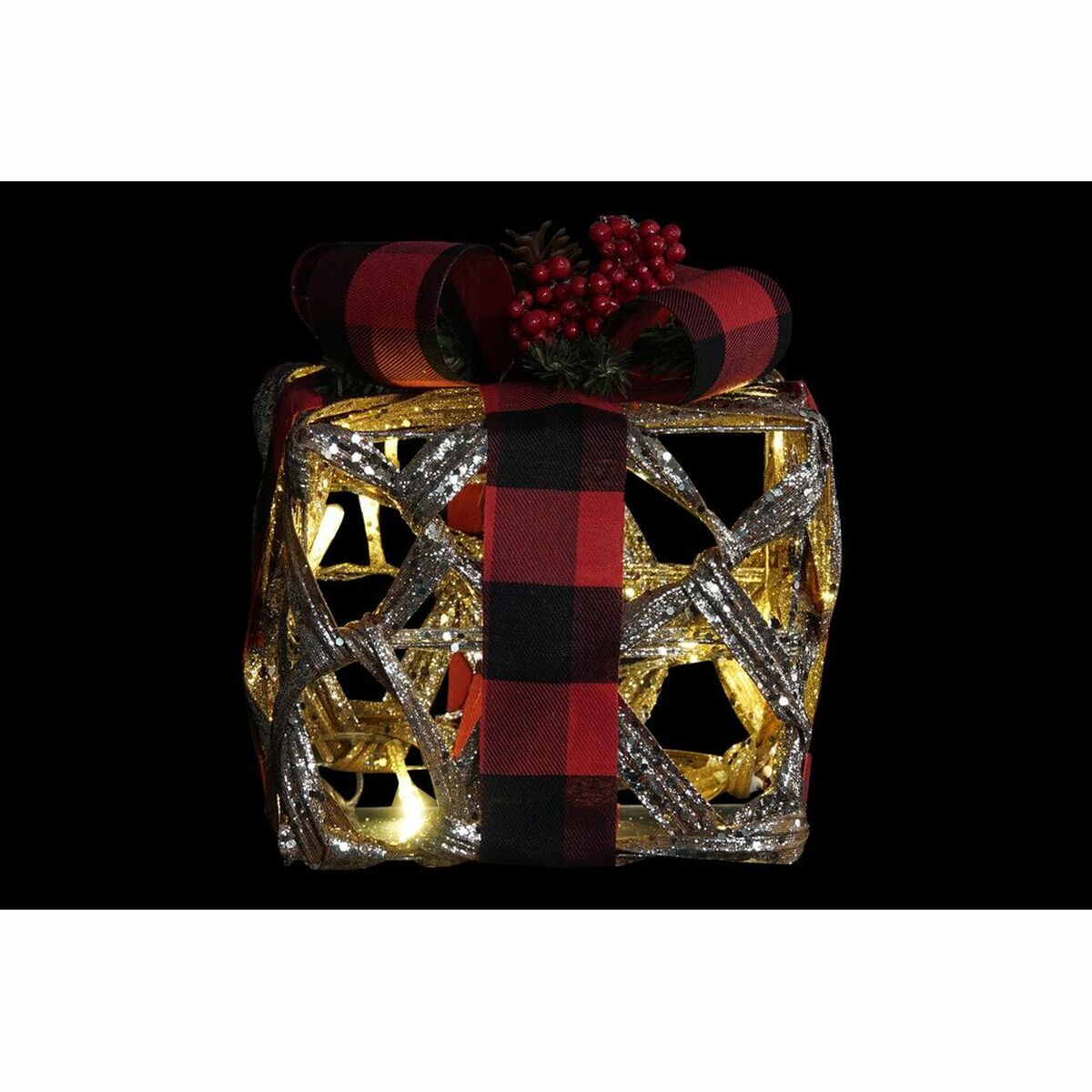 - **Design natalizio accattivante e luminoso**: Il set di 3 decorazioni a forma di scatole regalo, arricchite con porporina, colori vivaci (nero, rosso, argentato) e luci LED integrate, crea un'atmosfera festiva e accogliente, ideale per il periodo natalizio.