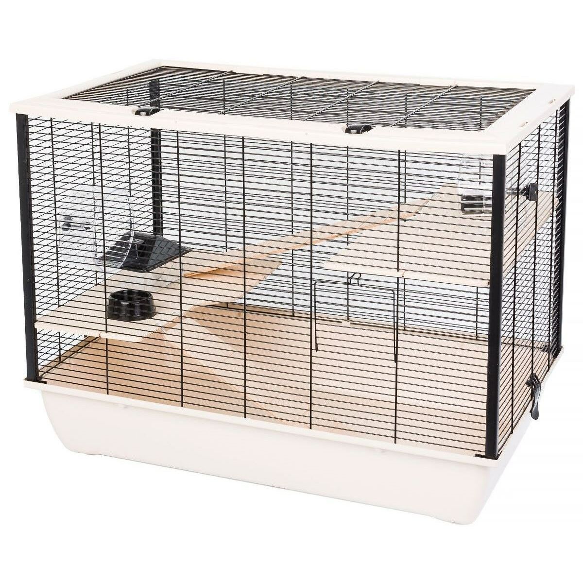 - **Base in plastica alta e contenitiva:** La ricerca online conferma che questo modello (noto come "Rabbit House") è dotato di un vassoio in plastica profondo. Questo design è molto funzionale per contenere la lettiera, riducendo la dispersione di materiale all'esterno della gabbia e mantenendo l'area circostante più pulita.