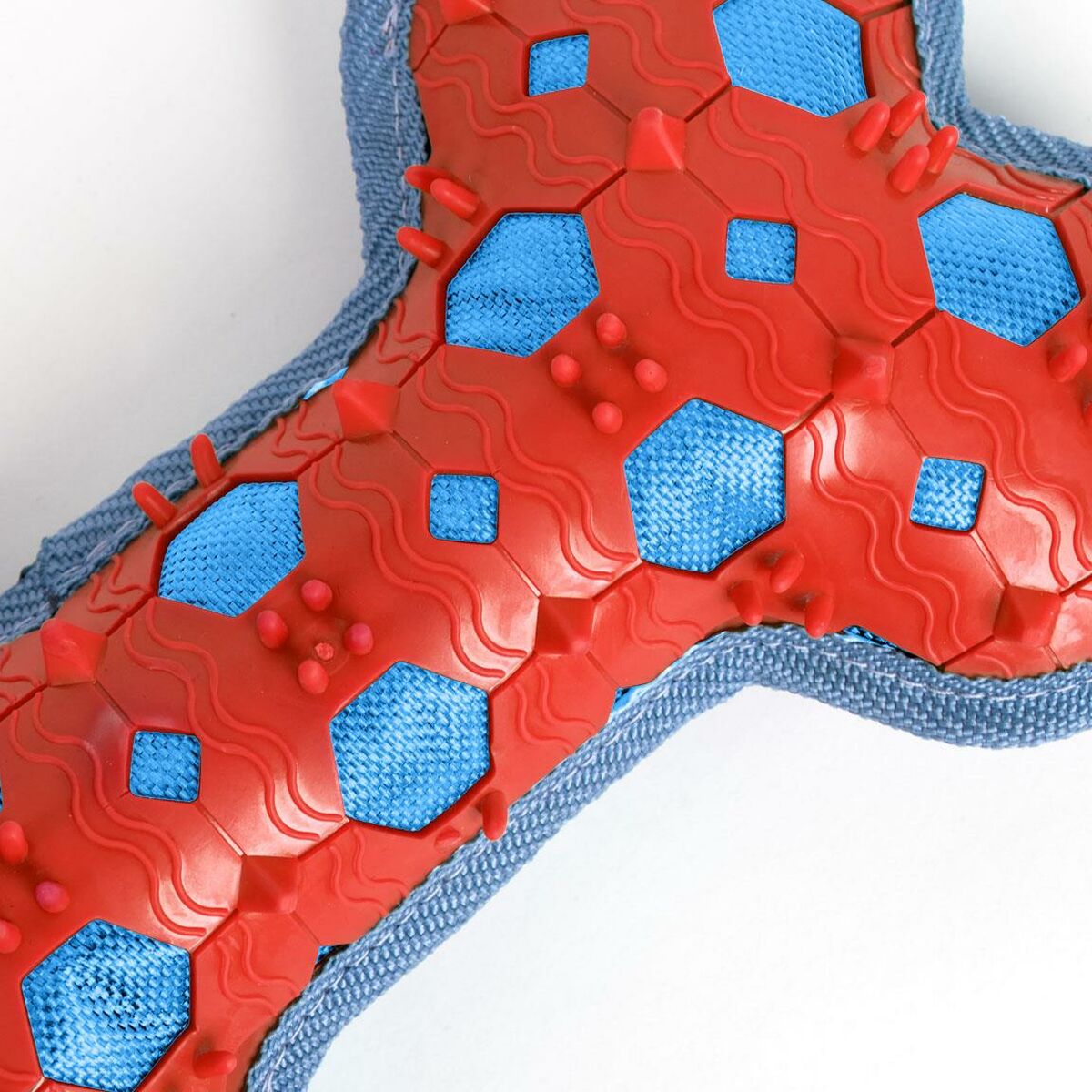 * **Combinazione di materiali (TPR e Poliestere):** L'utilizzo congiunto di TPR (gomma termoplastica), nota per la sua resistenza e durabilità alla masticazione, e poliestere, offre diverse texture che possono rendere il gioco più stimolante e versatile, ad esempio per mordere e tirare.