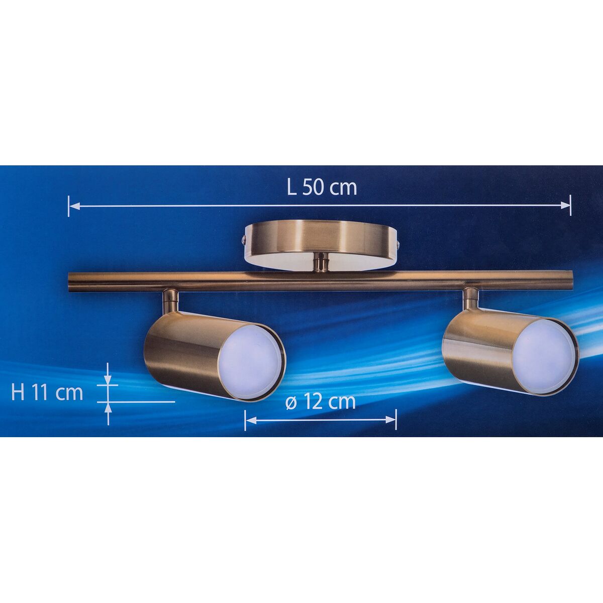 * **Illuminazione direzionale e flessibile:** Dotato di due faretti con attacco GU10, il prodotto permette di orientare la luce verso specifici punti o aree della stanza, offrendo versatilità nell'illuminazione d'accento o funzionale.