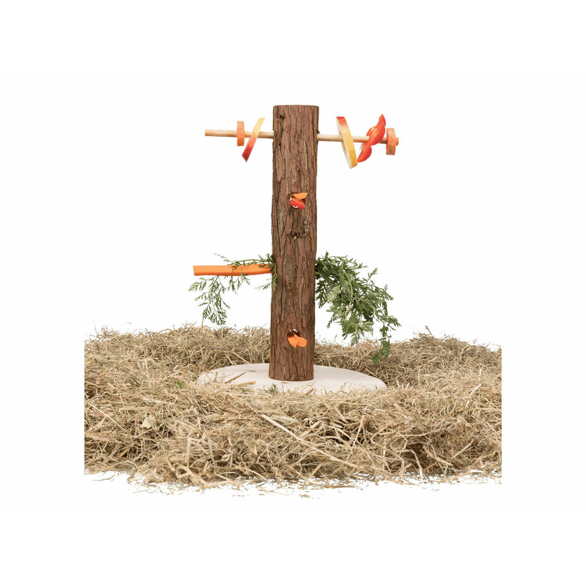 - **Stimolazione e arricchimento ambientale:** Il supporto incoraggia gli animali (in particolare roditori come conigli e porcellini d'India) a interagire attivamente con il cibo, simulando il foraggiamento naturale e offrendo un utile arricchimento ambientale.