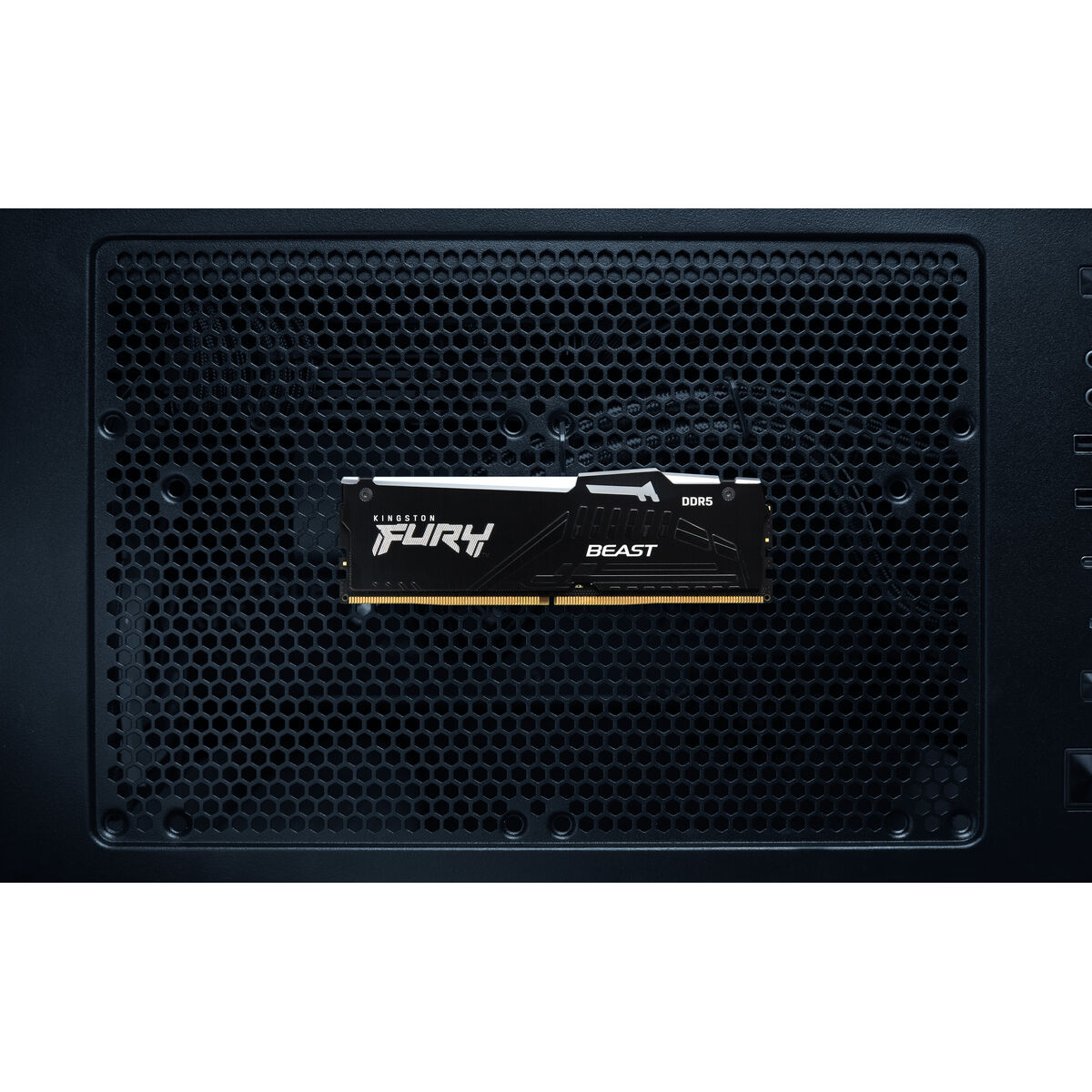 * **Estetica Accattivante con RGB:** Il modulo presenta un design in colore nero arricchito da un'illuminazione retroilluminata (confermata come RGB dalla serie Kingston FURY Beast), permettendo una personalizzazione visiva e un'integrazione estetica moderna in PC con case trasparenti o build orientate all'aspetto.
