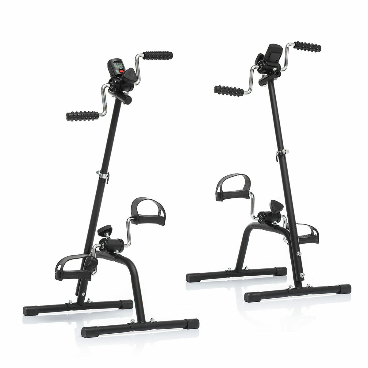 Questa mini pedaliera doppia consente di esercitare braccia e gambe comodamente da seduti. Dispone di contatore digitale, altezza regolabile, piedini antiscivolo, cinturini di fissaggio nei pedali e regolatore di intensità dell’esercizio. Ideale per persone anziane.