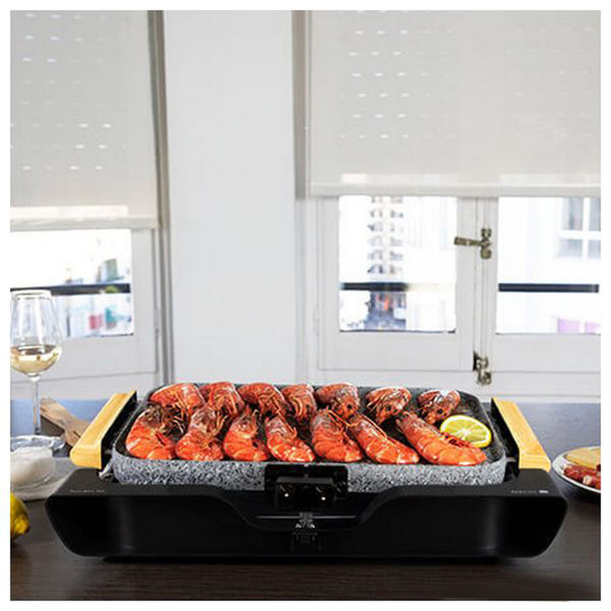 - **Versatilità e Ampietà della Superficie di Cottura**: La piastra è reversibile, offrendo una funzionalità grill e una superficie in pietra ideale per arrostire, consentendo cotture più sane e variegate. Le dimensioni generose (41 x 25,5 cm) sono perfette per cucinare per più persone contemporaneamente.