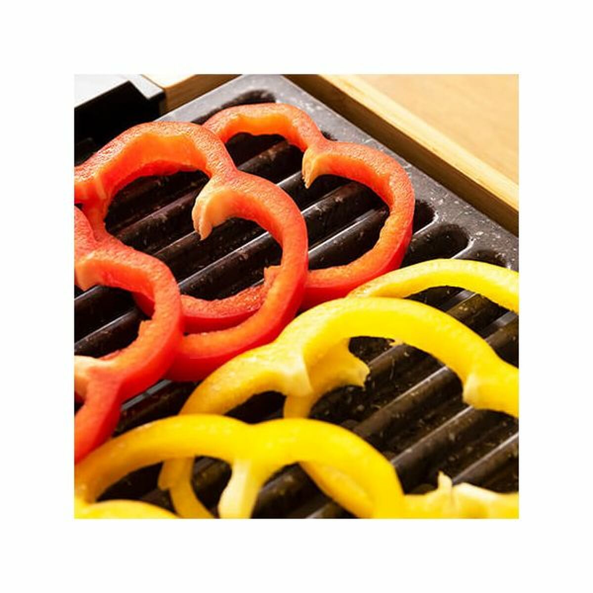 - **Design elegante e praticità d'uso:** La struttura in bambù conferisce un tocco estetico distintivo e naturale. Inoltre, il termostato regolabile, il vassoio raccogli grasso e la possibilità di lavare la piastra (presumibilmente la superficie di cottura rimovibile) in lavastoviglie migliorano l'esperienza utente e la manutenzione.