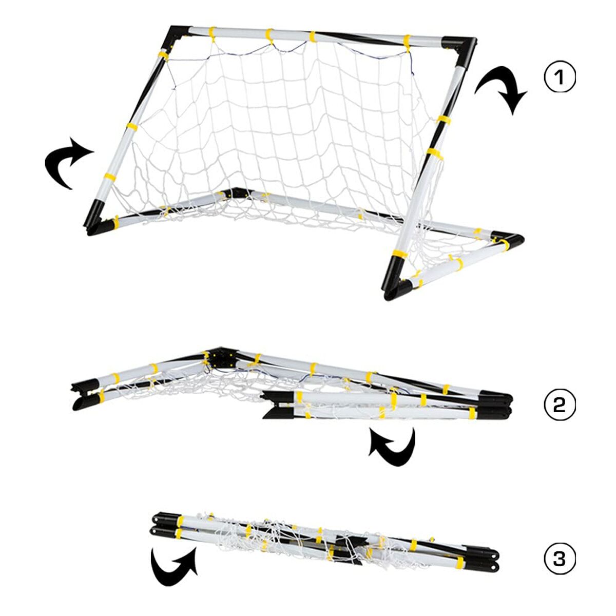 - **Portabilità e praticità:** Grazie al materiale plastico leggero e alla sua caratteristica pieghevole, la porta è facile da trasportare e riporre dopo l'uso, occupando poco spazio. Le dimensioni contenute (90 x 59 x 59 cm) la rendono adatta a giardini, cortili o anche spazi interni ampi.