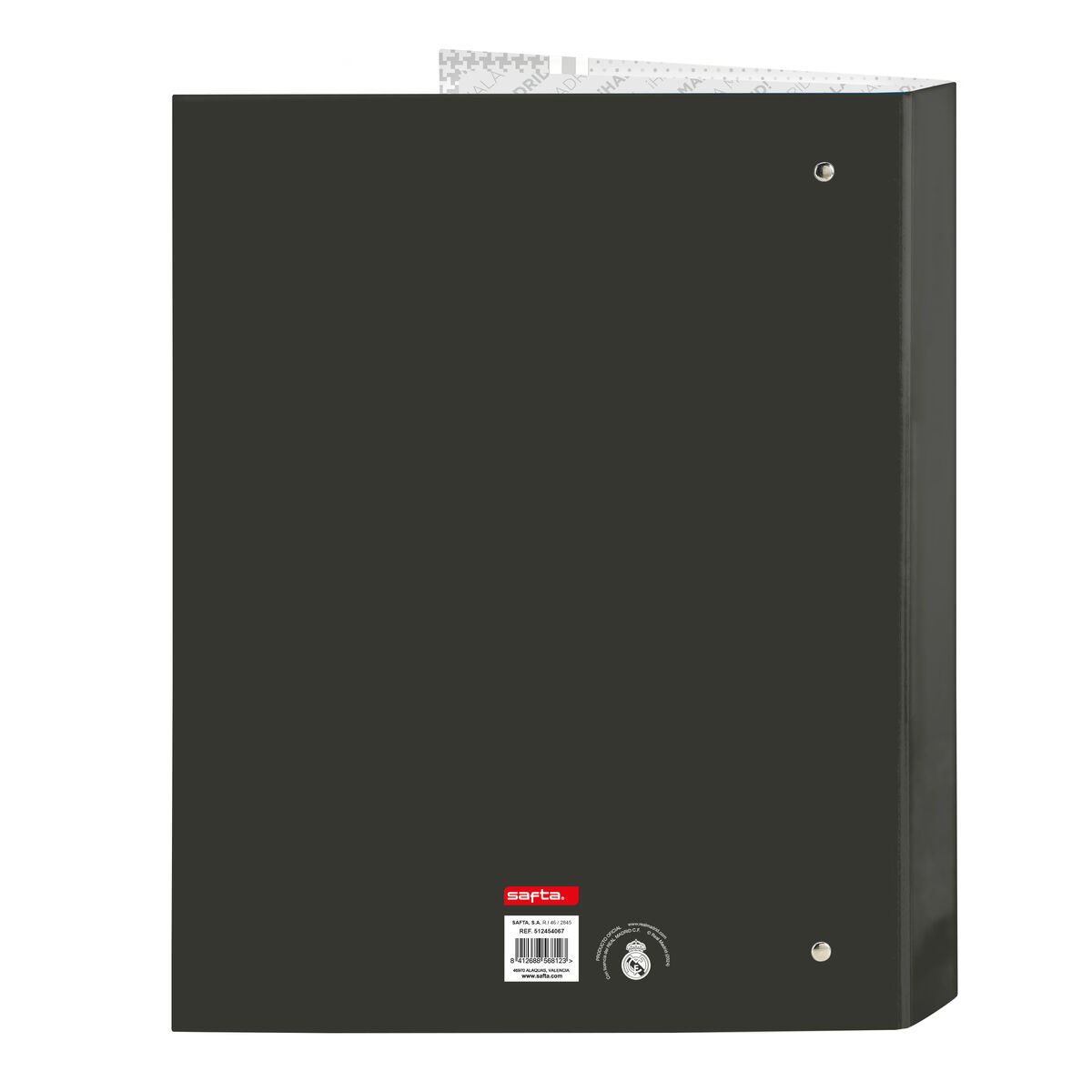 - **Prodotto ufficiale dal design curato:** Essendo un articolo con licenza ufficiale del Real Madrid C.F., il raccoglitore presenta un'estetica riconoscibile e di qualità. Il design sobrio sui toni del bianco e del grigio lo rende adatto non solo per la scuola, ma anche per l'ufficio o l'uso personale da parte di tifosi adulti.