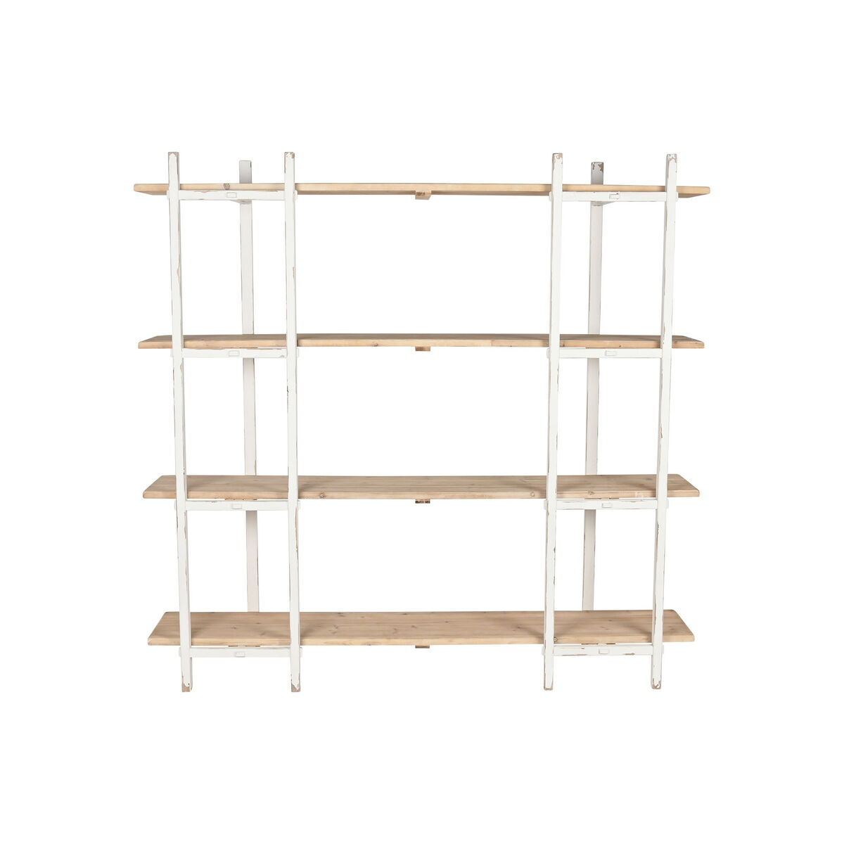 - **Design distintivo e originale:** La combinazione di struttura in metallo e ripiani in legno di abete con finitura bianca "decapaggio" conferisce allo scaffale un look unico, ideale per chi cerca un tocco rustico-chic o industriale per distinguere l'arredamento.