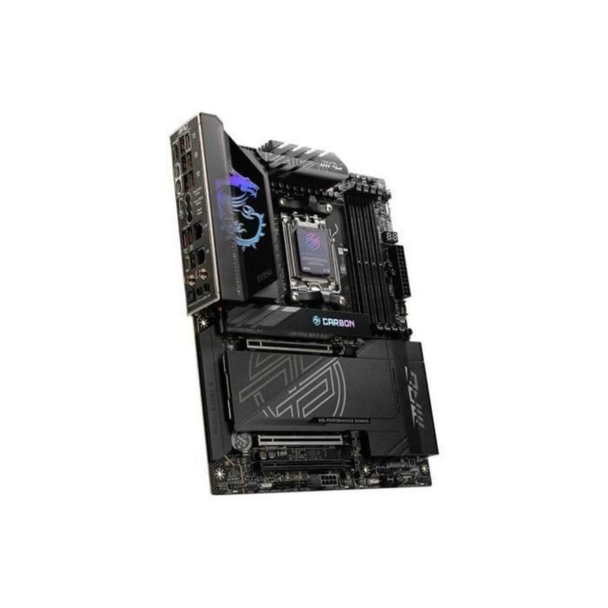 - **Connettività e funzionalità premium**: La serie MSI MPG CARBON WIFI è rinomata per la robusta sezione di alimentazione (VRM), il raffreddamento avanzato e una connettività completa, inclusi Wi-Fi 7, Bluetooth 5.4, Ethernet ad alta velocità (probabilmente 2.5G o superiore) e numerose porte USB 3.2 Gen 2.