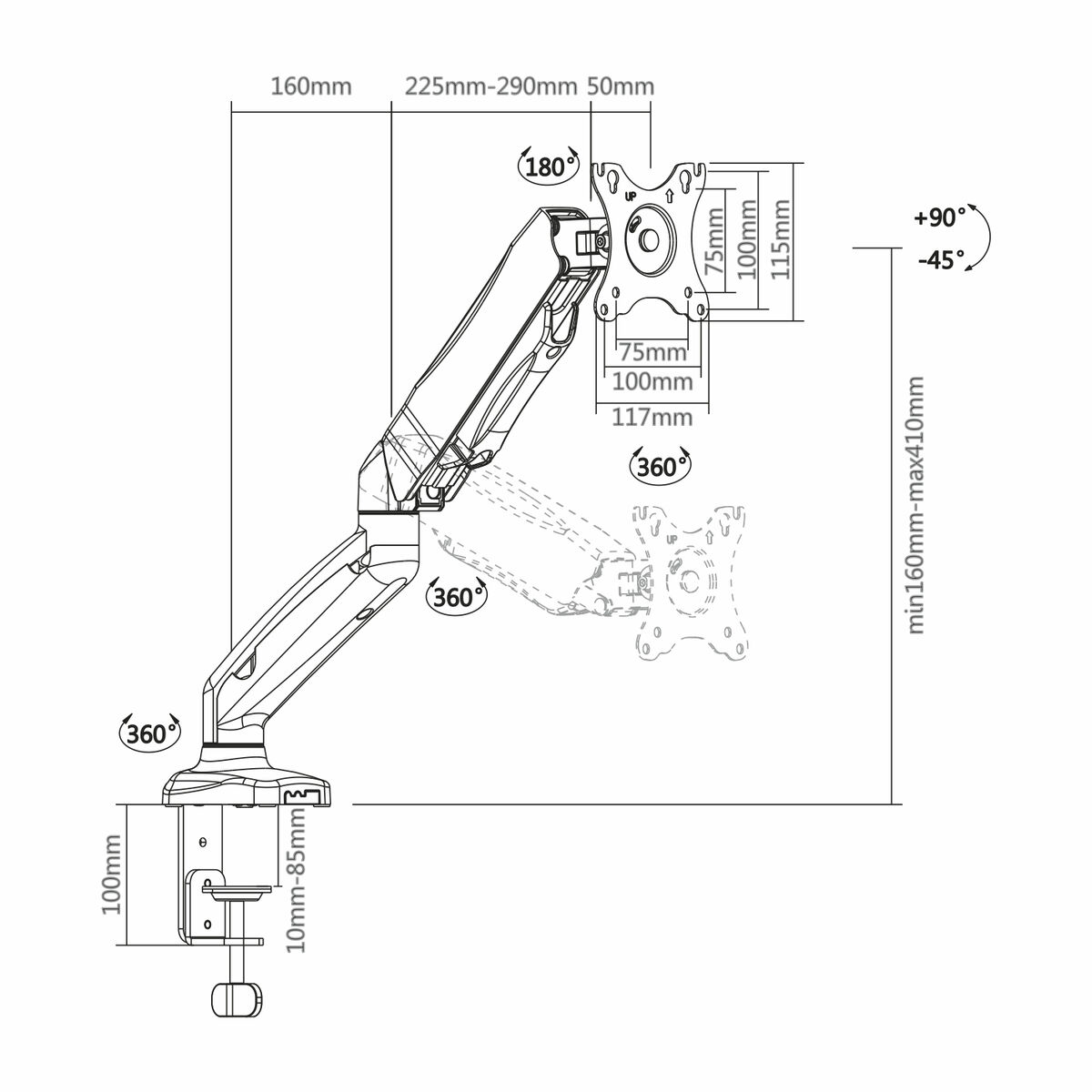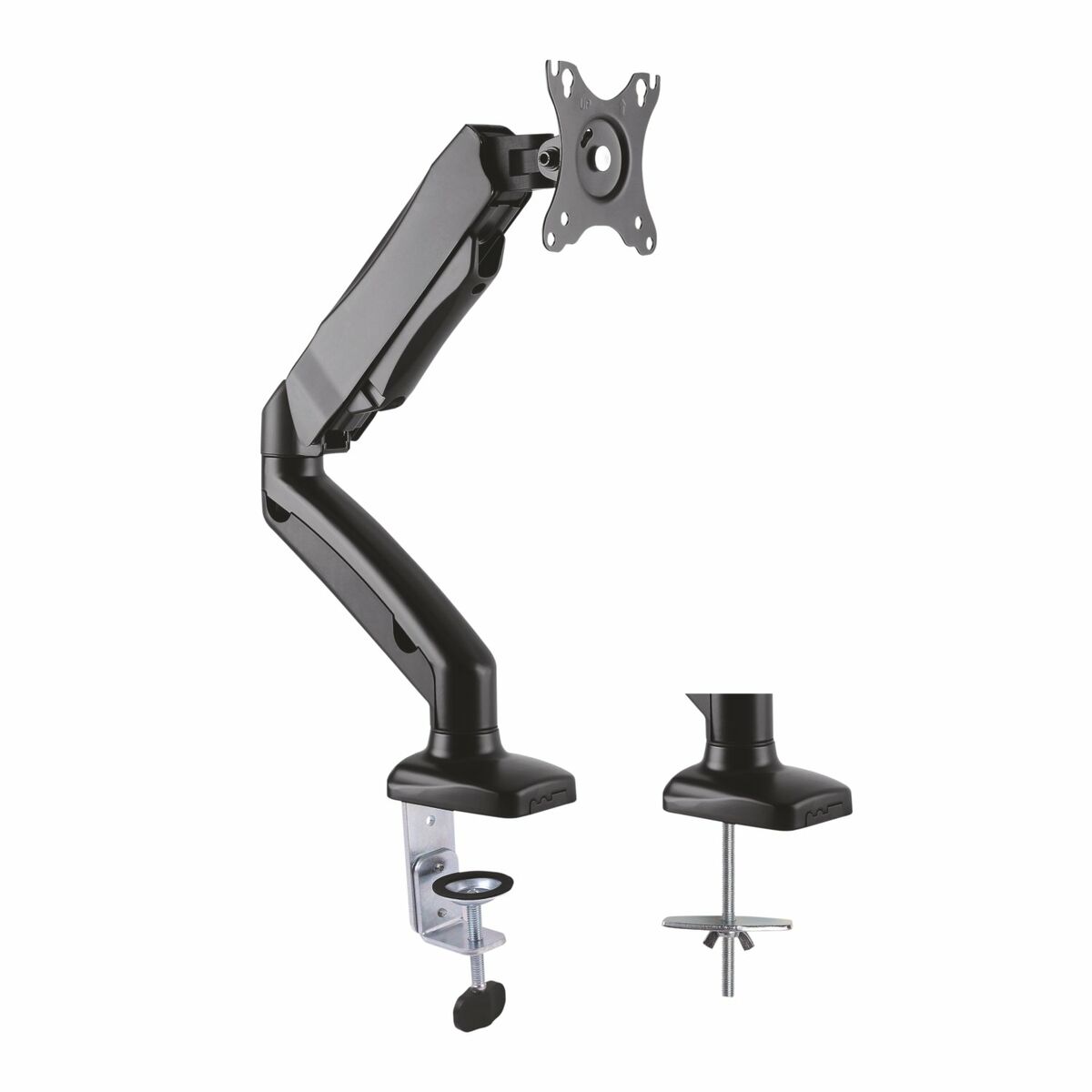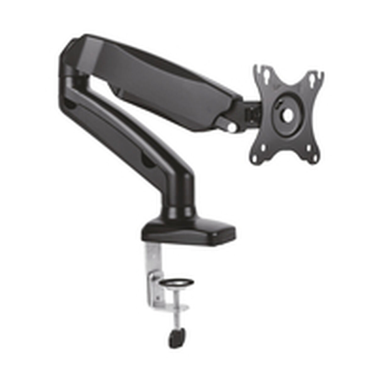 Il supporto da tavolo per schermo AISENS DT27TSR-043 è una soluzione robusta e funzionale progettata per migliorare l’ergonomia e la posizione del tuo monitor grazie al sistema di braccio girevole e inclinabile con tre punti di snodo e un braccio che consente regolazioni precise. Realizzato in alluminio ad alta resistenza e acciaio, questo supporto unisce leggerezza e durata, con una finitura in colore nero ottenuta tramite verniciatura elettrostatica che offre maggiore protezione e un aspetto professionale. È indicato per schermi da 13” a 32” (33 cm a 81,3 cm) e un peso compreso tra 2 e 9 kg, garantendo stabilità e sicurezza senza ostacolare il movimento naturale del braccio. La compatibilità con lo standard VESA 75 x 75 mm e 100 x 100 mm facilita il montaggio su un’ampia gamma di monitor, assicurando un fissaggio saldo e semplice tramite morsetto per il fissaggio diretto a tavoli o scrivanie. Inoltre, consente un’inclinazione verticale da -45º a 90º, offrendo flessibilità per regolare lo schermo secondo le preferenze visive ed evitare riflessi o fastidi posturali. Un elemento chiave è il sistema di regolazione della forza tramite vite integrata, che permette di calibrare la resistenza del braccio per mantenere il monitor stabile nella posizione desiderata, evitando movimenti automatici se ben regolato, garantendo un controllo ergonomico personalizzato. Questo sistema è particolarmente utile per compensare schermi con pesi diversi all’interno del range consigliato. Nel complesso, l’AISENS DT27TSR-043 si distingue come un supporto da tavolo versatile e resistente che facilita un’esperienza di lavoro o intrattenimento più confortevole e adattata alle esigenze dell’utente, combinando materiali duraturi, precisione nel movimento e compatibilità con gli standard più diffusi sul mercato.