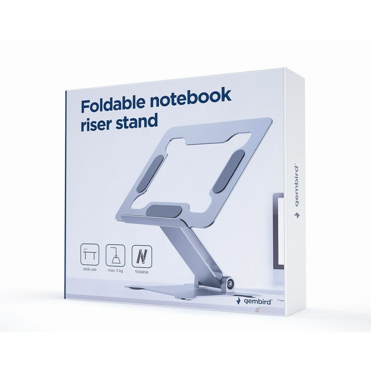 - **Pieghevole e Portatile:** Il design pieghevole, come indicato nella descrizione e confermato da immagini online, rende il supporto GEMBIRD NBS-D1-03 facilmente trasportabile e ideale per chi necessita di mobilità. La sua compattezza lo rende perfetto per l'utilizzo in viaggio o in diversi ambienti.