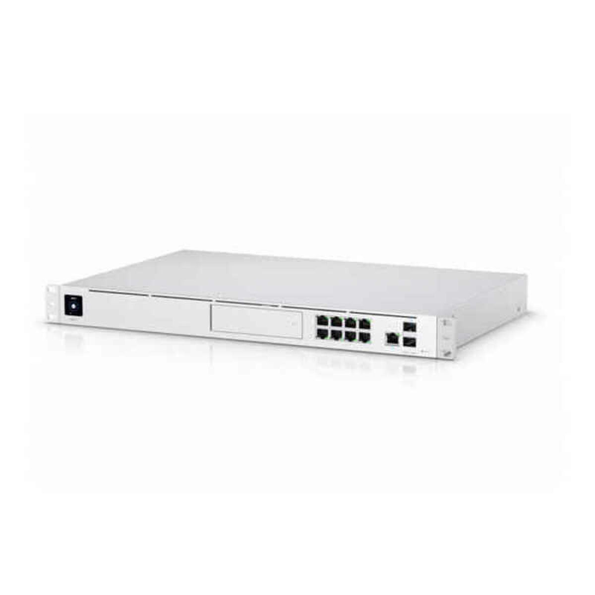 - **Espandibilità e Ecosystem:** Si integra perfettamente nell'ecosistema UniFi di Ubiquiti, permettendo l'aggiunta e la gestione di numerosi altri dispositivi (come Access Point Wi-Fi, telecamere di sicurezza) tramite un'unica interfaccia. Dispone inoltre di un vano per disco rigido da 3.5"/2.5" per la registrazione video di UniFi Protect.