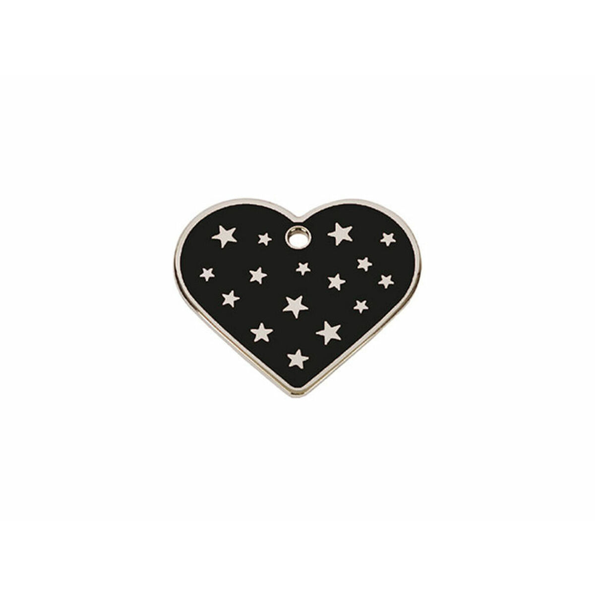 - **Design Accattivante e Moderno:** La forma a cuore e la combinazione di colori nero e argentato, con una finitura laccata, conferiscono alla targhetta un aspetto elegante e "alla moda", come indicato nella descrizione, ideale per i proprietari che cercano un accessorio distintivo per il proprio cane.