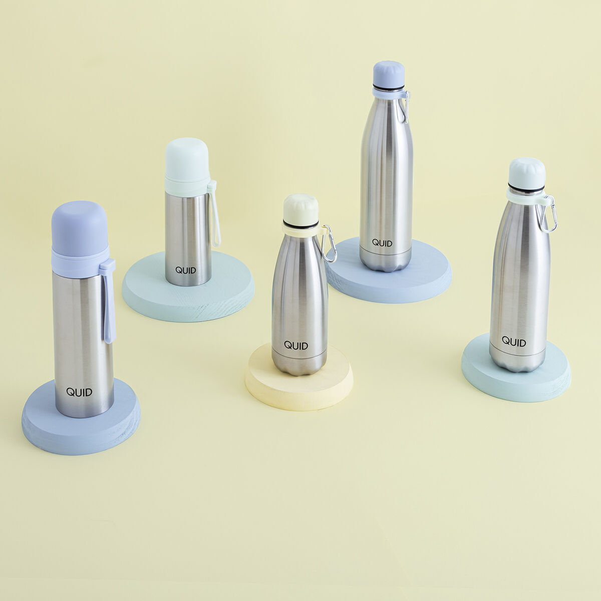 * **Materiale resistente e isolante:** Realizzato in metallo (probabilmente acciaio inossidabile, come suggerito dalla ricerca online per thermos simili di Quid), il thermos è robusto e, quasi certamente, dotato di doppia parete per un'efficace conservazione della temperatura di bevande calde o fredde.