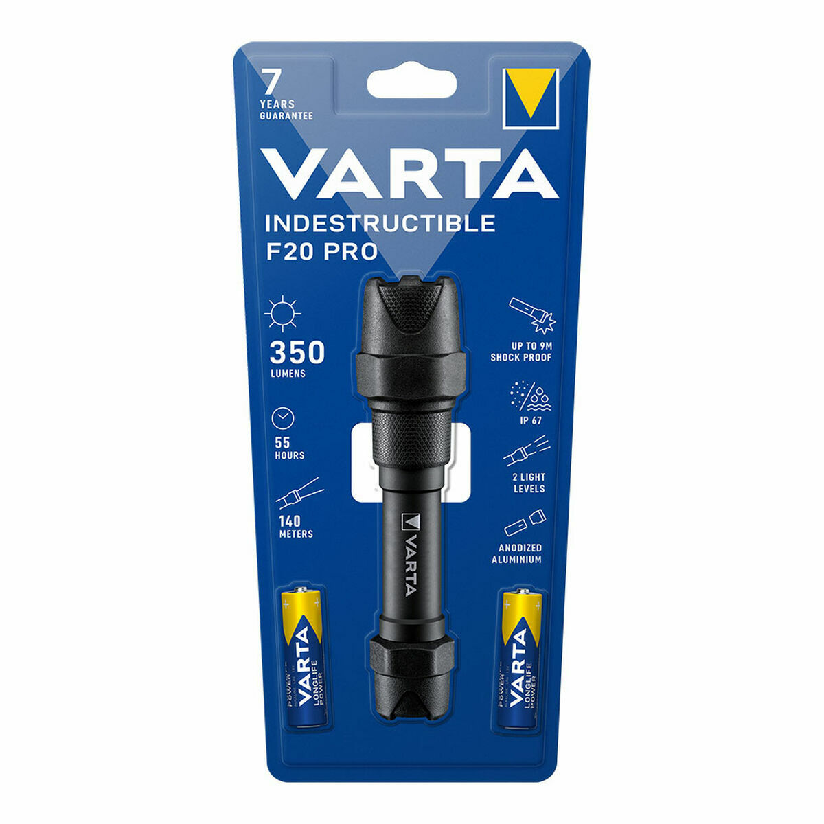- **Robustezza e Durabilità:** La ricerca conferma che questo modello appartiene alla serie "Indestructible" di Varta. È costruita in alluminio anodizzato con parti gommate per l'assorbimento degli urti, progettata per resistere a cadute da altezze elevate (fino a 9 metri) e possiede una certificazione di resistenza all'acqua (IP67).