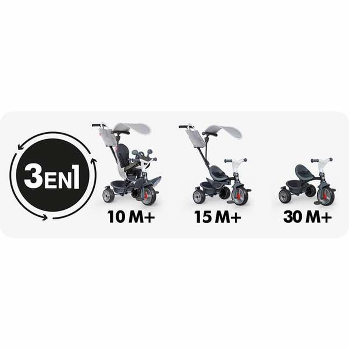 Il Triciclo Baby Drive Confort Grigio della marca Smoby è un veicolo progettato per offrire ai bambini un’esperienza di guida sicura e confortevole. Questo triciclo è pensato per bambini a partire da 2 anni, adattandosi perfettamente alle loro prime avventure motorie. Il suo design combina funzionalità ed estetica con una finitura in colore grigio metallizzato che dona un tocco moderno ed elegante, mentre altre varianti in nero e multicolore si adattano a gusti diversi. È concepito per garantire stabilità grazie alla struttura robusta ed equilibrata, facilitando l’apprendimento della coordinazione e dell’equilibrio in un ambiente controllato. Dispone di un sedile confortevole che offre un adeguato supporto per l’età consigliata, assicurando comodità durante l’uso prolungato. Questo triciclo è adatto ai bambini, favorendo lo sviluppo psicomotorio attraverso il gioco attivo e stimolante. I materiali sono selezionati per garantire resistenza e durata, mantenendo la sicurezza come priorità principale. La semplicità nell’uso offre ai più piccoli una prima esperienza positiva di guida, incoraggiando l’indipendenza e il movimento all’aperto. Così, il Smoby Triciclo Baby Drive Confort Grigio rappresenta un’opzione pratica e sicura per i bambini che iniziano a esplorare le proprie capacità motorie con un prodotto di qualità e design adatto alle loro esigenze.