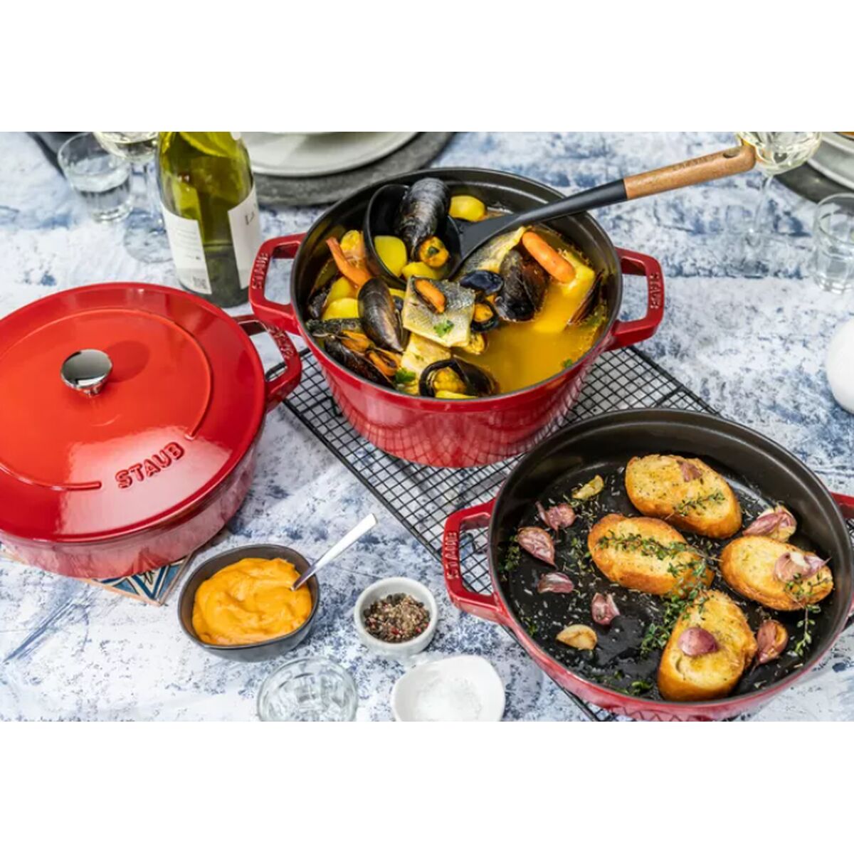 - **Design Funzionale ed Estetico:** Dotate di coperchio e maniglie, queste cocotte sono pratiche sia per la cottura che per la presentazione in tavola. La forma rotonda e il colore rosso aggiungono un tocco di eleganza e stile alla cucina.